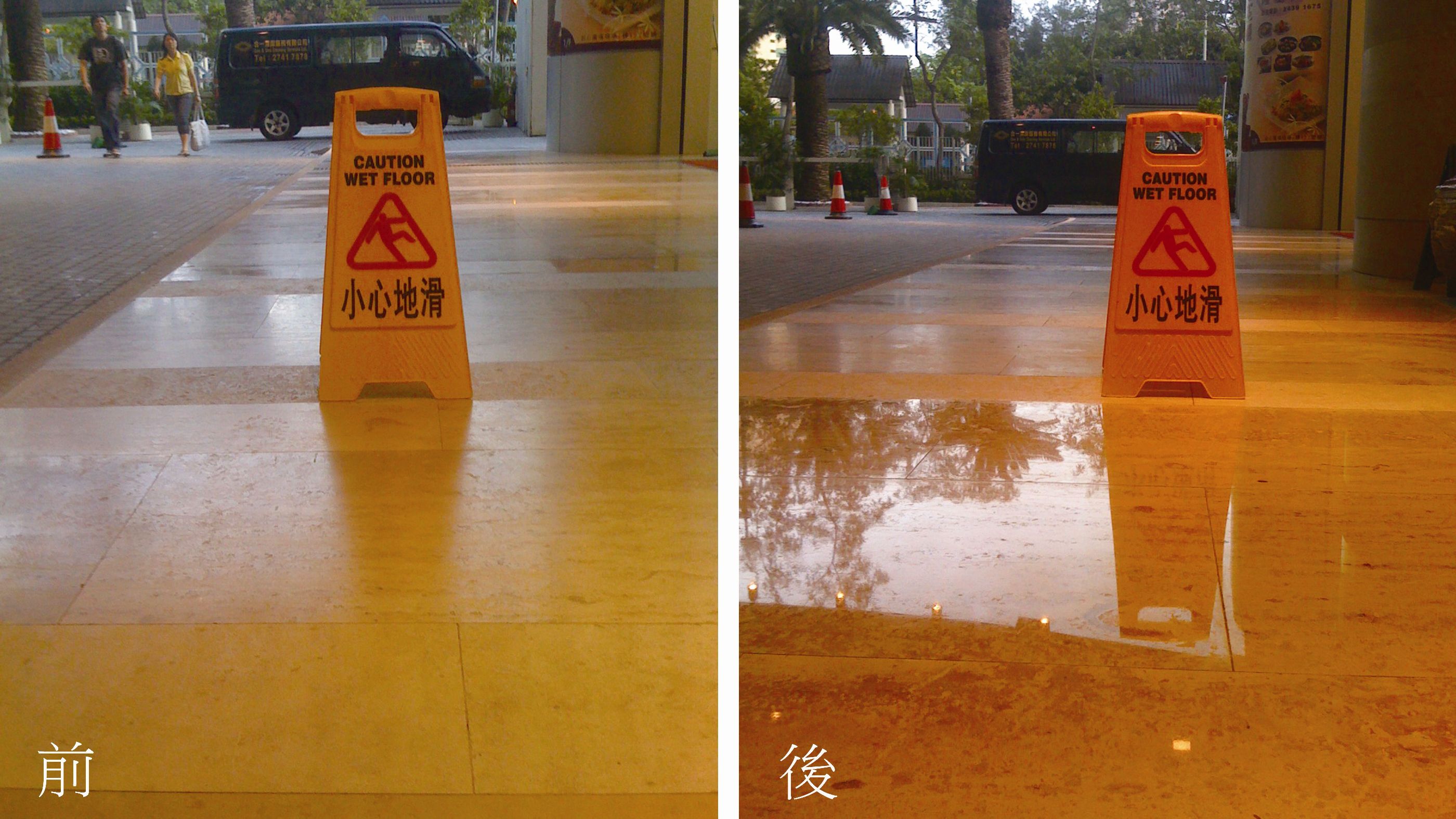防滑處理:處理後的石質地面除了外觀光潔亮麗外,還有防滑的功效;